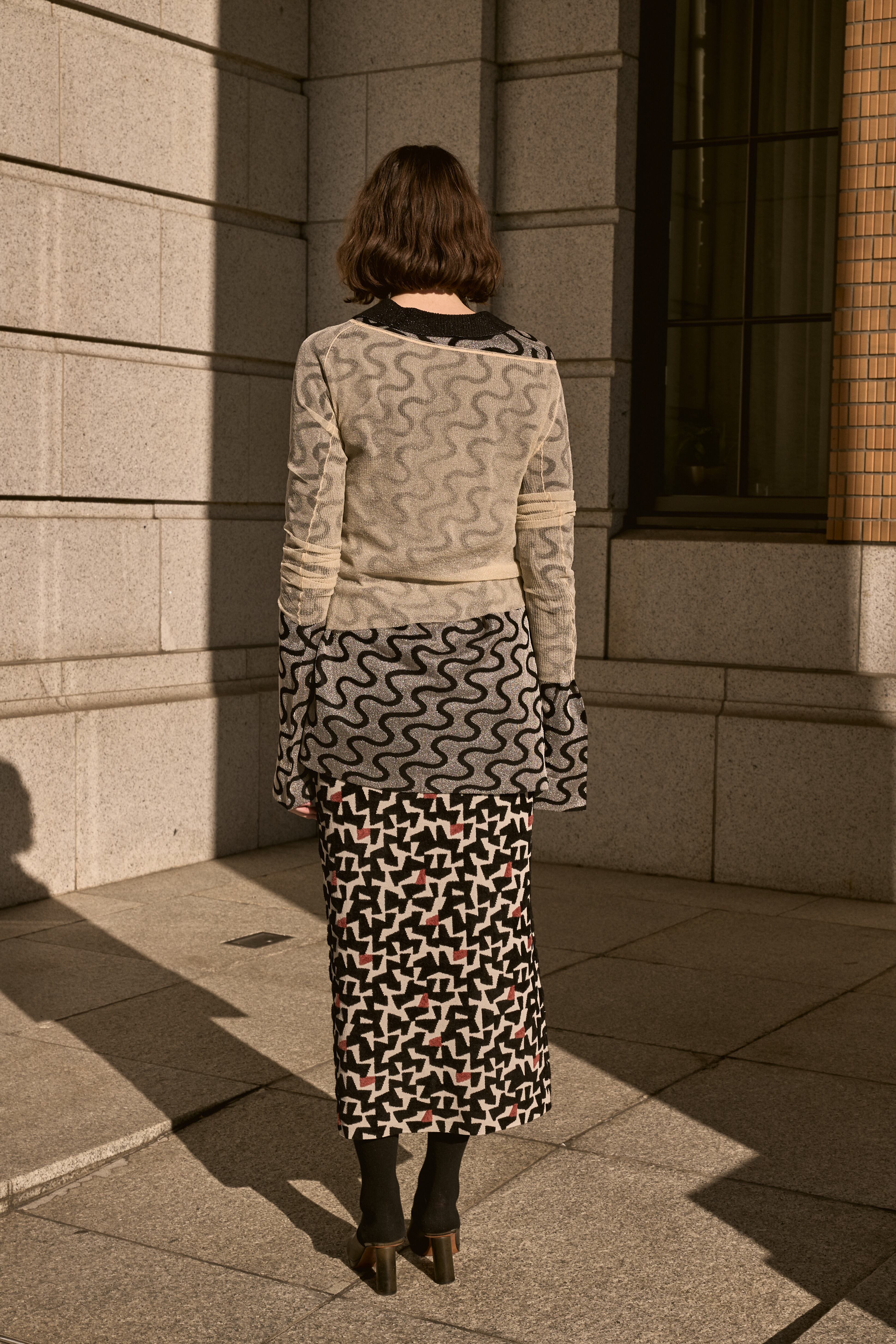 台形が連なった立体感のあるジオメトリックパターン。
