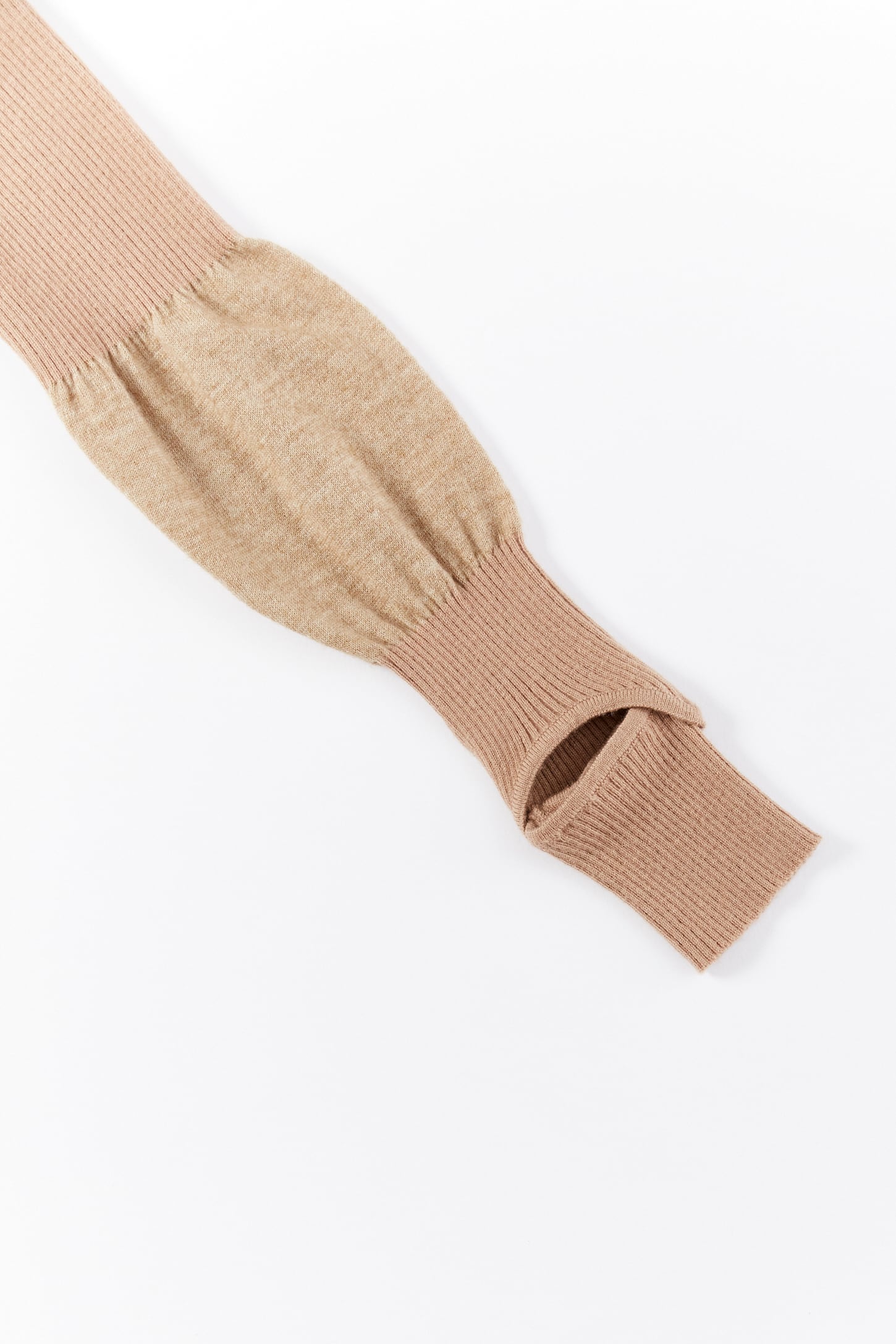 タイトになるようリブでアクセントを付けた肩、肘、袖口がポイント。
