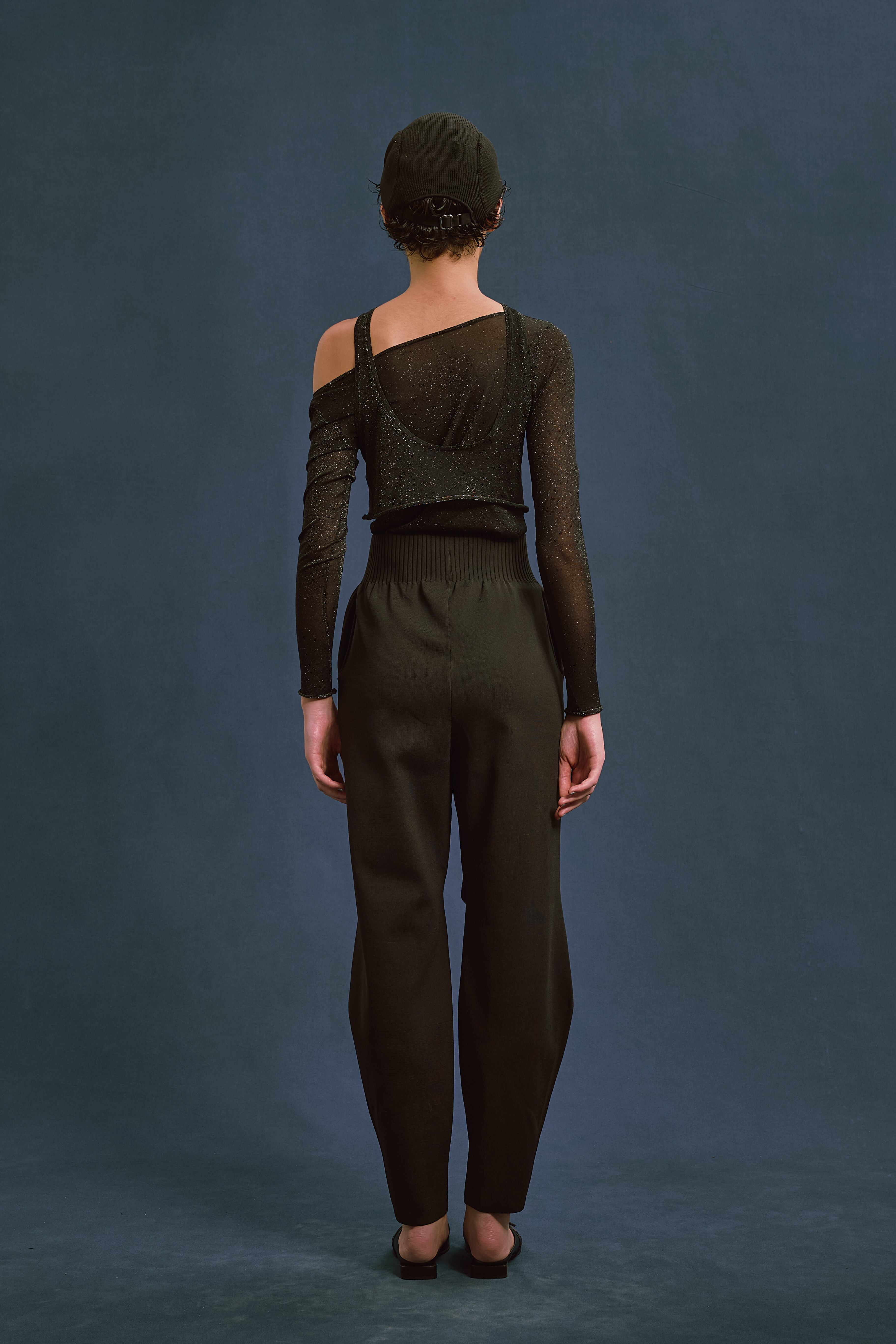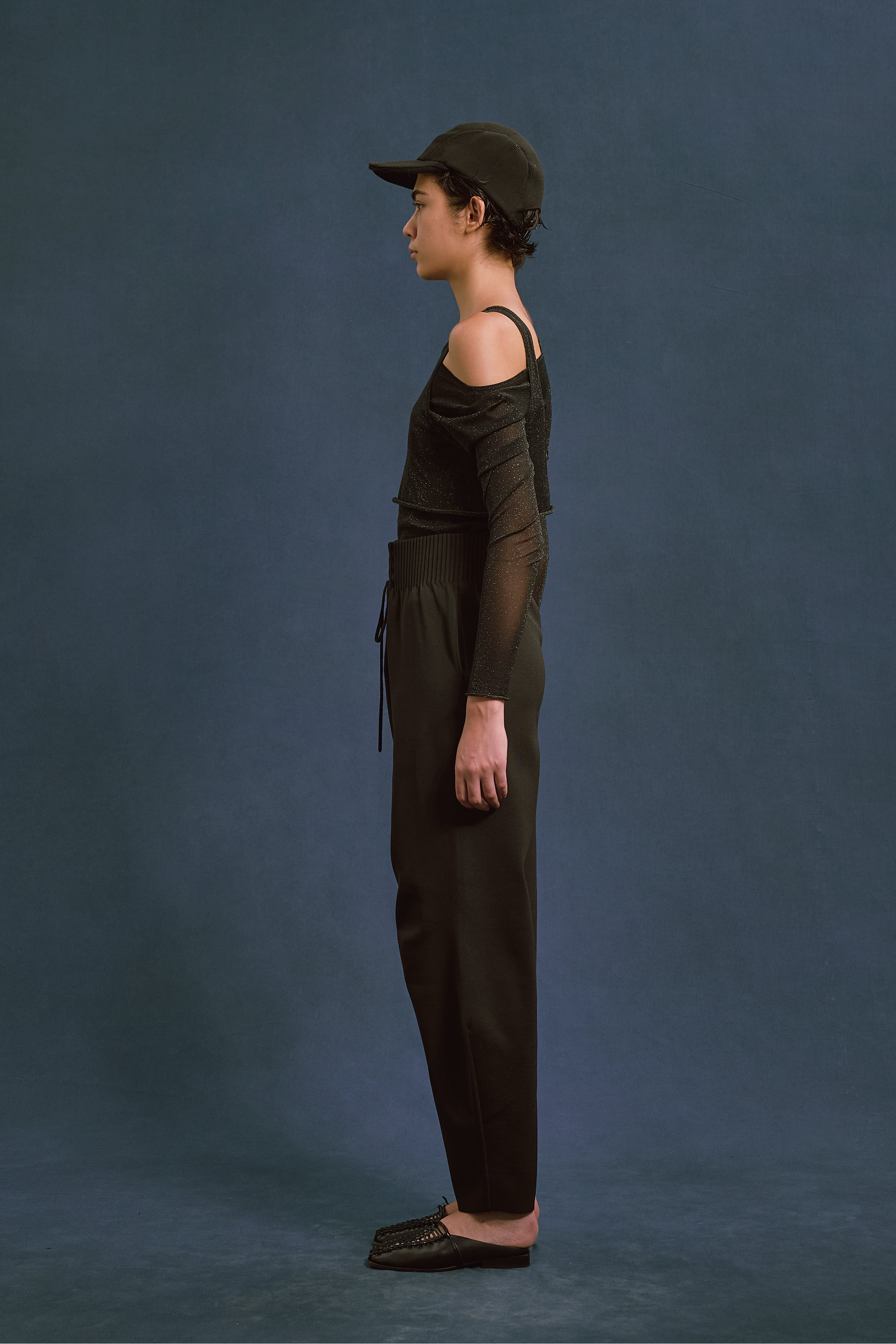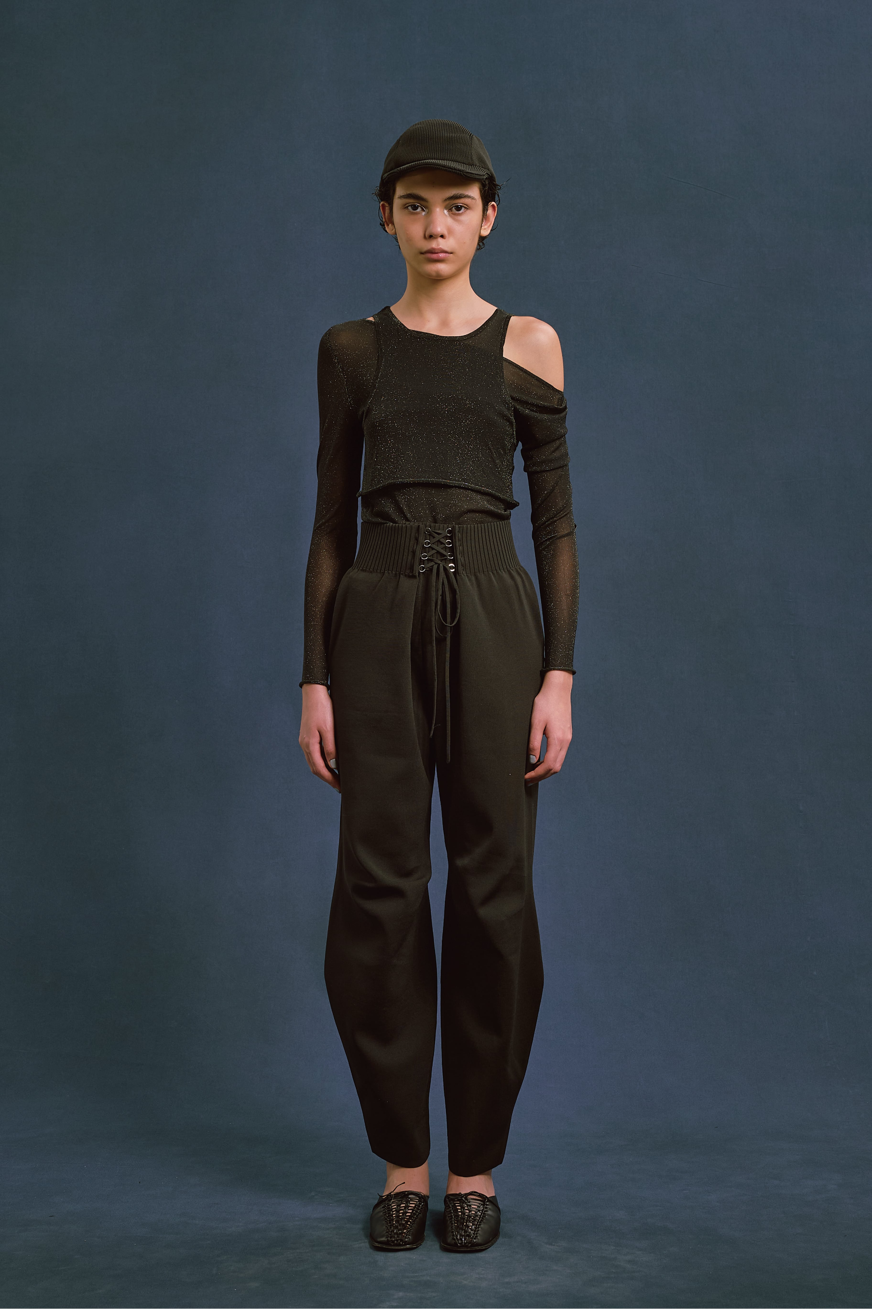 柔らかくストレッチの効いた細く繊細でシアーに仕上がるラメ糸を使用。